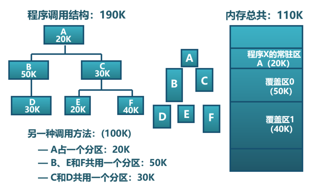 覆盖技术需要程序员在编写应用程序时,来手动控制和管理何时进行覆盖,不同程序段的覆盖顺序,以及覆盖的具体空间位置。这虽然减少了应用程序在执行过程中对内存空间的需求,当对应用程序开发者的编程水平提出了很高的要求,而且通用性比较差。