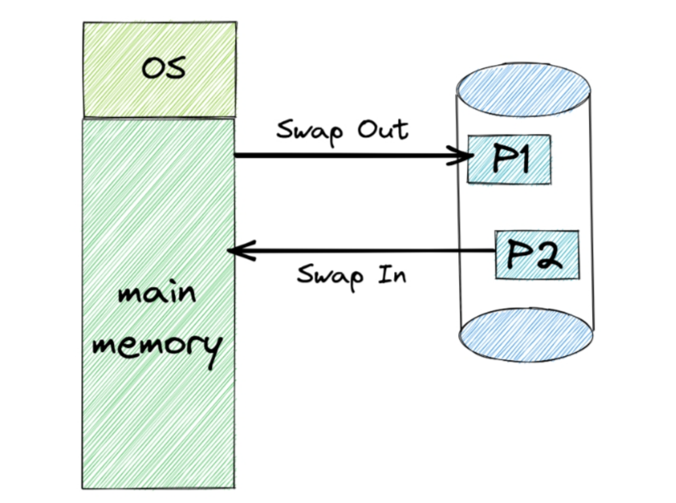 首先是交换的时机,即何时需要发生交换?当一个任务在创建或执行过程中,如果内存不够用了,操作系统就需要执行内存交换操作。