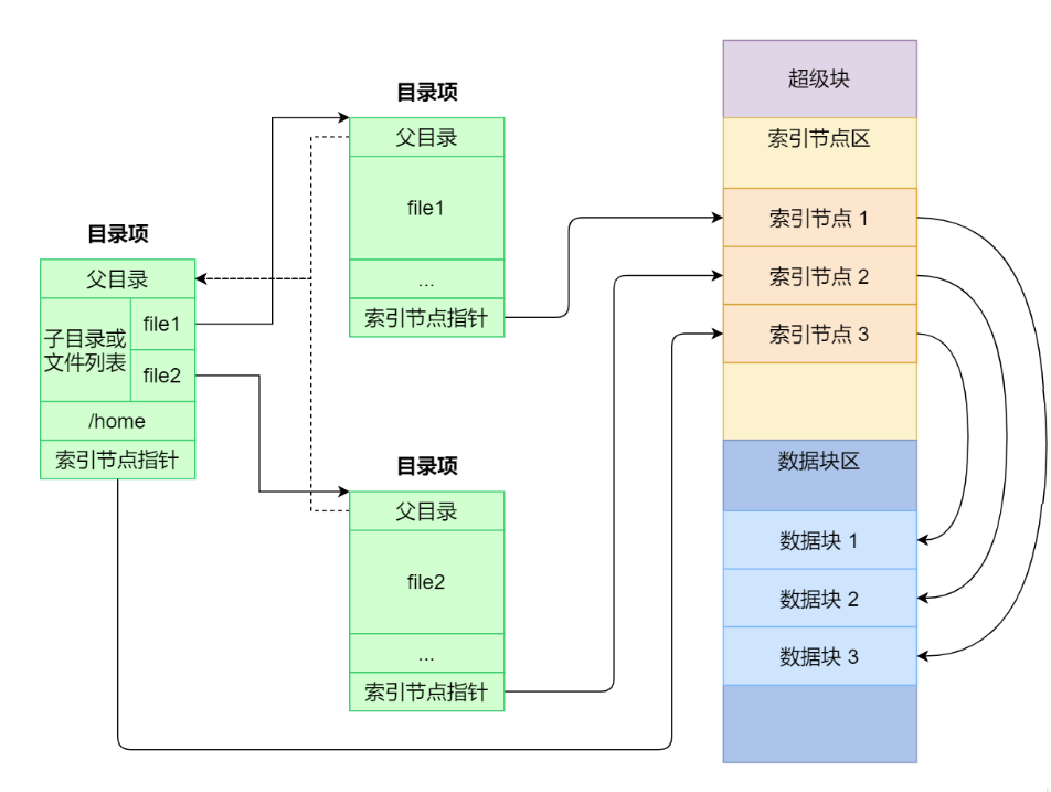 Links 给出文件的硬链接数。同一个文件系统中如果两个文件(目录也是文件)具有相同的inode号码,那么就称它们是“硬链接”关系。这样links的值其实是一个文件的不同文件名的数量。(本章的练习需要你在文件系统中实现硬链接!)